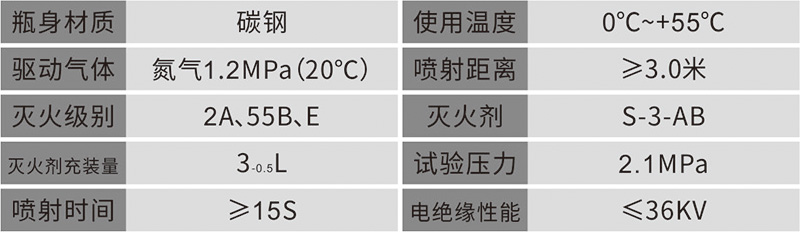 二、灭火器参数见下表: