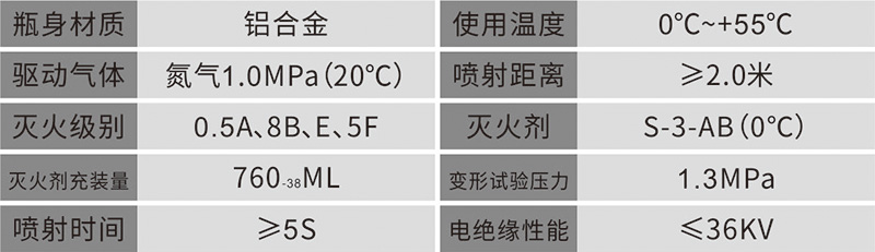 二、灭火器参数见下表: